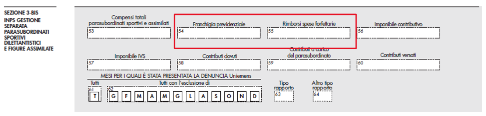 Infine, all’interno della sezione “INPS gestione separata parasubordinati sportivi dilettantistici e figure assimilate” all’interno della parte della CU 2026 dedicata ai dati previdenziali ed assistenziali, vengono inseriti i nuovi campi 54 e 55.