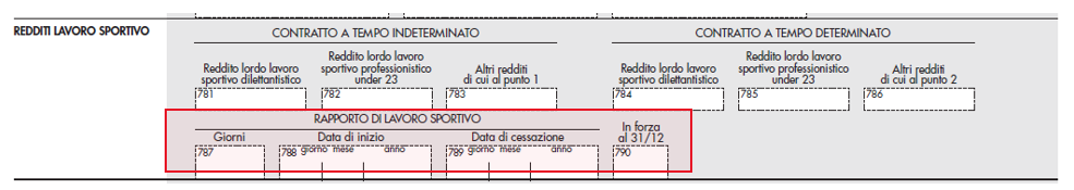 All’interno della sezione “redditi di lavoro sportivo”, poi, vengono introdotti i nuovi campi da 787 a 790, strettamente connessi alla compilazione delle precedenti caselle da 781 a 786.
