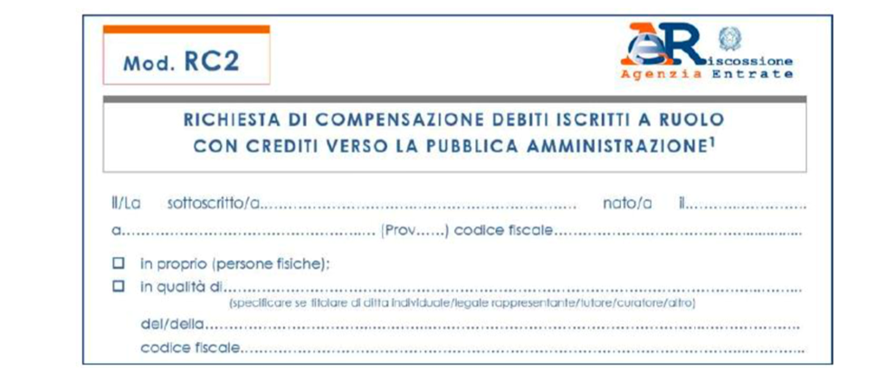 • tramite il modello RC2 (reperibile presso gli sportelli territoriali) l’impresa o il professionista presenta la richiesta di compensazione,
