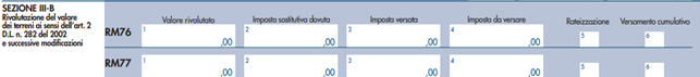 Nel caso di rivalutazione dei terreni deve essere compilato il quadro RM del modello redditi (sezione III-B). I dati da indicare sono i seguenti: