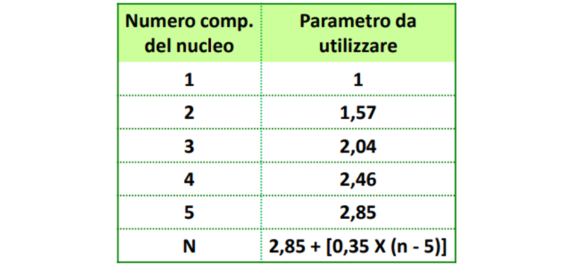 Si ricorda che i parametri della scala di equivalenza corrispondenti al numero di componenti il nucleo familiare sono i seguenti: