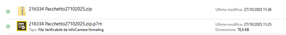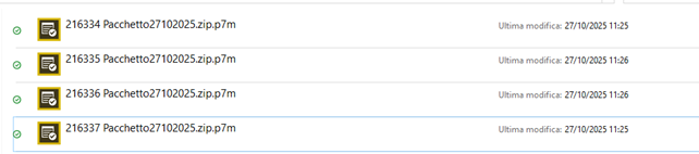 Ciascun file viene dal sistema nominato come “pacchetto” seguito da un numero che corrisponde alla data di messa a disposizione del pacchetto stesso. Ciò comporta il fatto che, nell’esempio proposto, senza ulteriori interventi ci si ritrova con il file “Pacchetto27102025”, “Pacchetto27102025(1)”, “Pacchetto27102025(2)” e così via. A parere di chi scrive, ciò rende i passaggi successivi più complicati. Si consiglia quindi, all’atto del salvataggio, di assegnare al file il rispettivo nome del pacchetto di distribuzione (scriversi il numero ed inserirlo nel nome del file per il quale si effettua il download).