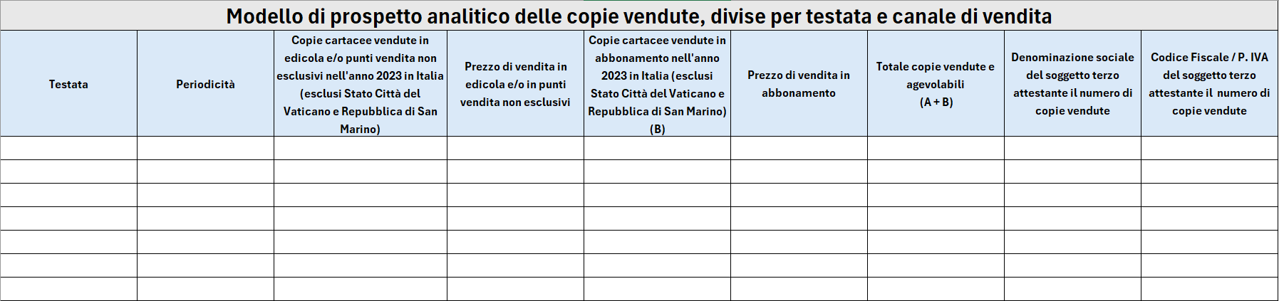 Nel prospetto devono essere dettagliati per ciascuna testata richiesta:
