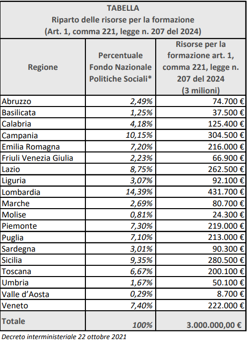 Con Decreto 29 dicembre 2025 della Presidenza del Consiglio dei Ministri-Dipartimento per le pari opportunità è stato effettuato il riparto tra le Regioni delle somme per il rafforzamento e dell’orientamento e della formazione al lavoro delle donne vittime di violenza. Tale iniziativa è finalizzata a favorire la loro indipendenza economica ed emancipazione.