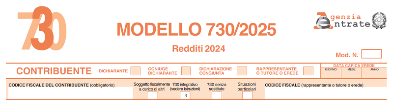 In tal caso dovrà indicare il Codice 3 nella relativa Casella “730 integrativo” presente nel Frontespizio.