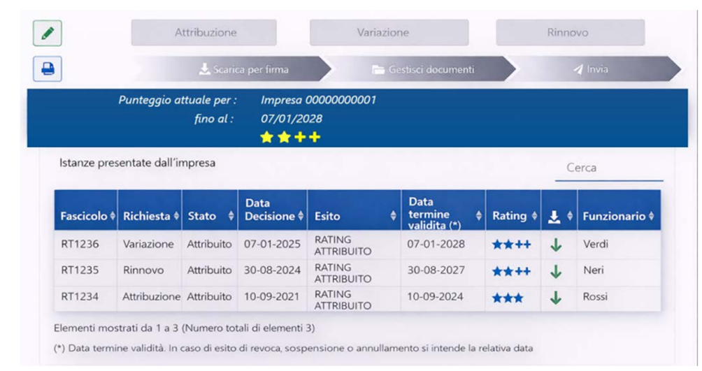 – dal 16 marzo 2026: con l’estensione della durata da due a tre anni, la previsione di un punteggio aggiuntivo per le imprese che hanno già ottenuto il rinnovo del rating per almeno tre volte consecutive ed il rilascio dell’attestato di attribuzione in inglese.