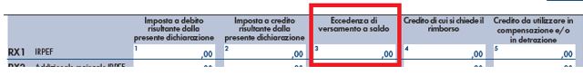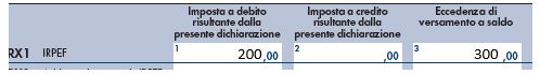 Il contribuente deve indicare i 200 € versati in eccesso in colonna 3 del rigo RX 1