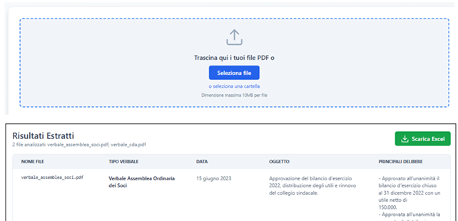 Tramite applicazioni create con l’IA con solo qualche istruzione di prompt è possibile estrarre i dati principali dei verbali societari, farli categorizzare e ottenere una sintesi delle delibere.